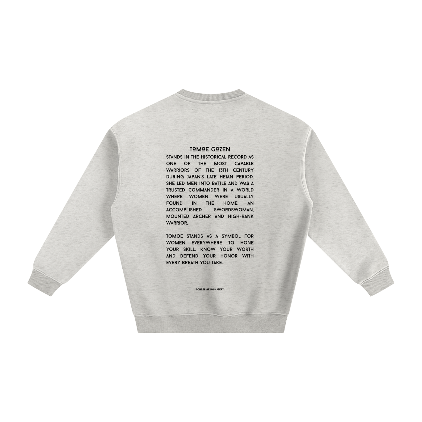 This sweatshirt carries the legacy of Tomoe Gozen without embellishment. It honors the reality of a woman who stepped into a demanding world and met it with precision, discipline and presence. Tomoe built her reputation through her undeniable commitment to becoming the best.